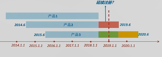 問:若產(chǎn)品3在綠色部分就進行了延續(xù)注冊,其當期定期風險評價報告要如何提交呢? 答:產(chǎn)品3的當期定期風險評價報告的數(shù)據(jù)匯總期就是整個綠色時間段。黃色時間段的數(shù)據(jù),就作為下一次延續(xù)注冊時,定期風險評價報告中的一部分內(nèi)容。